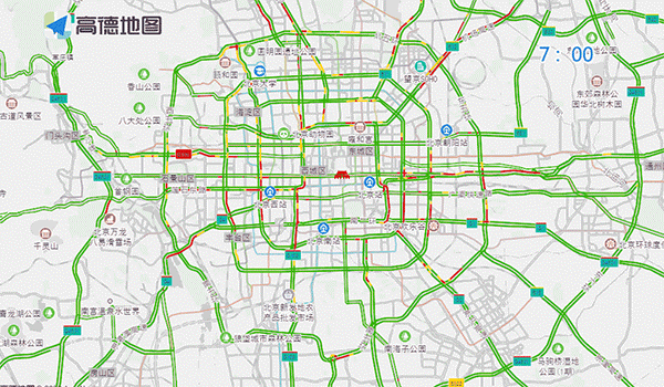 早高峰期间,城区环路部分路段,以及菜户营南路、通惠河北路、西直门北大街、德胜门外大街、圆明园西路至万泉河路、阜石路、莲石东路、京通快速等道路进城方向,以及京藏高速、京承高速、京港澳高速、机场高速等高速公路进京方向车流量较大,高峰时段为7:00—9:00,周一早高峰适逢尾号4和9限行,通行压力将尤为突出。