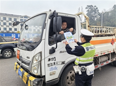 为防范化解高速公路货车安全风险,保障辖区道路通行稳定,近日,市公安局交通管理总队高速公路第一支队九龙坡大队在S7高新南收费站,开展货车专项检查与安全宣传活动,重点查验超限超载、非法改装、疲劳驾驶、准驾不符等违法,细致排查轮胎磨损、刹车系统、反光标识、灭火器配备等安全部件,确保隐患排查无死角。